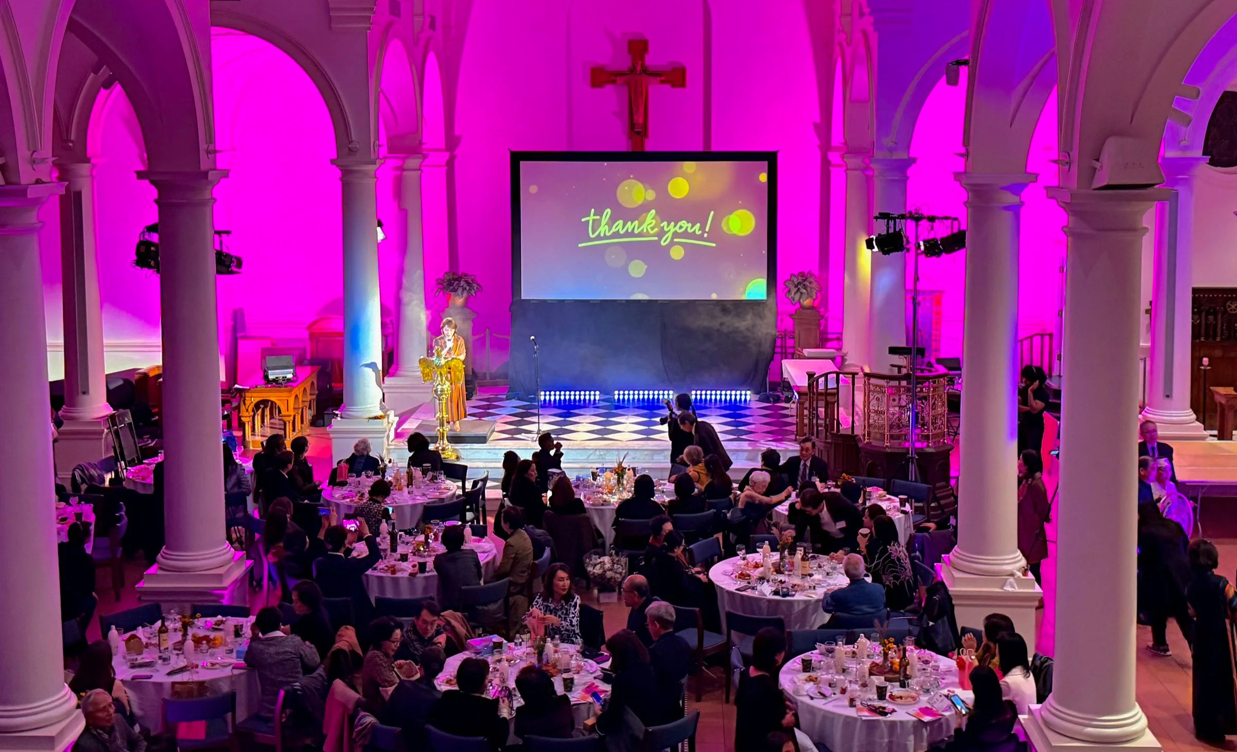 AHL Foundation Annual Gala. Used one projector for mood lighting and another with a zoom lens for the main display.